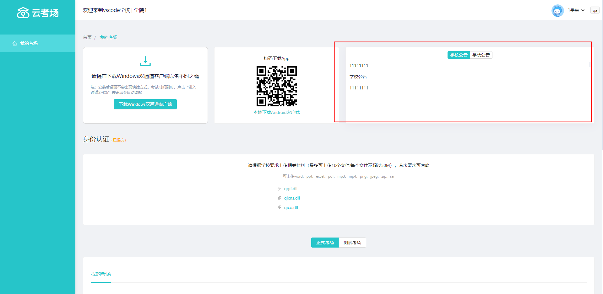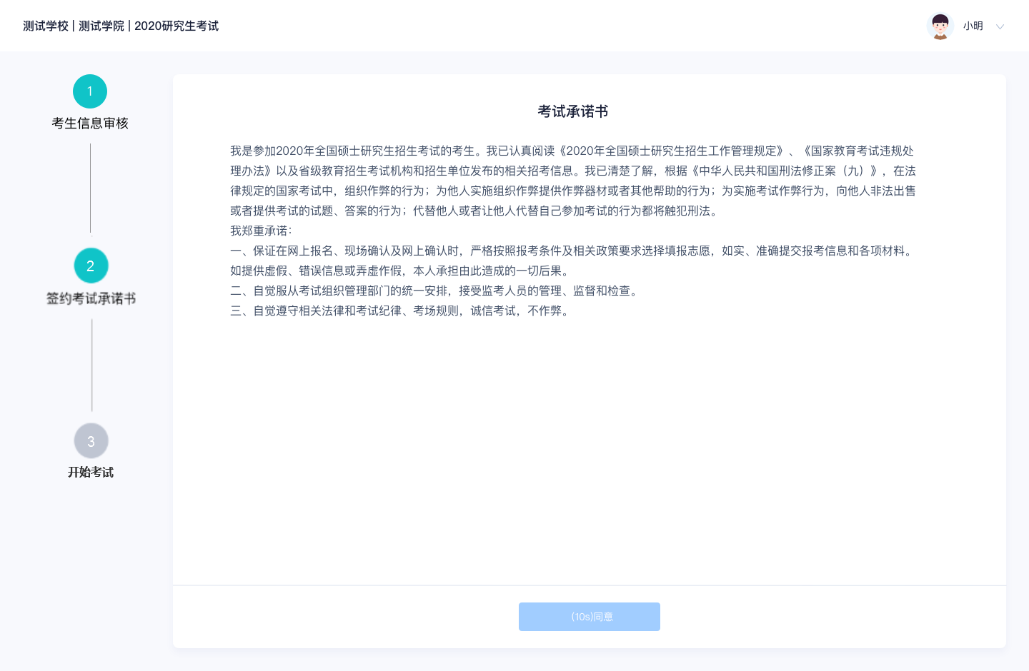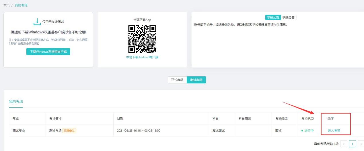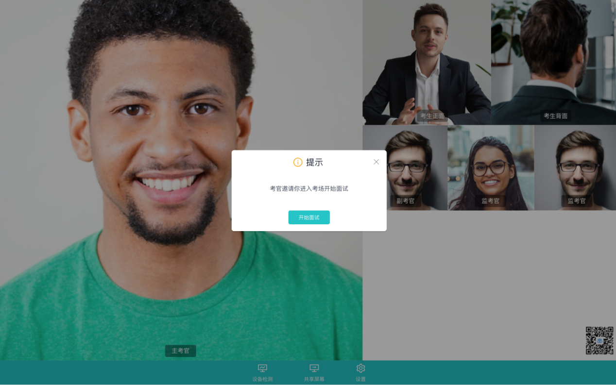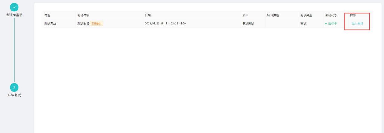 当轮到该生进行面试时,该生在候考区会收到面试邀请,点击进入考场按钮,考生会从候考区切换到考场进行面试