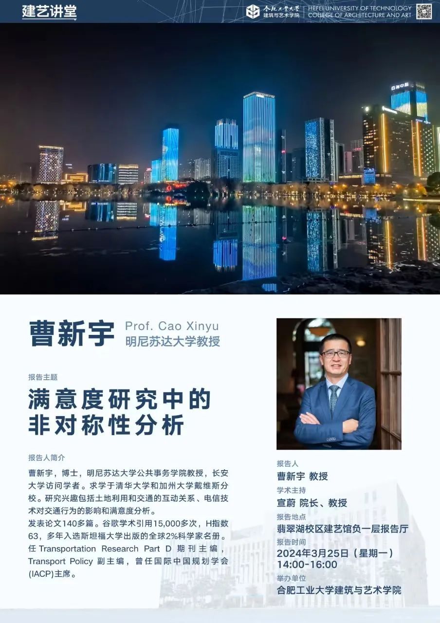 曹新宇,博士,明尼苏达大学公共事务学院教授,长安大学访问学者。求学于清华大学和加州大学戴维斯分校。研究兴趣包括土地利用和交通的互动关系、电信技术对交通行为的影响和满意度分析。他发表论文140多篇。谷歌学术引用15,000多次,H指数63,多年入选斯坦福大学出版的全球2%科学家名册。他任Transportation Research Part D期刊主编,Transport Policy副主编,曾任国际中国规划学会(IACP)主席。